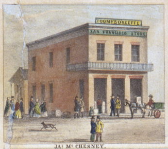 San Francisco Store corner of State and Parrots Ferry Road (formerly Broadway) and the hand tinted Poster view of Columbia 1855.