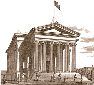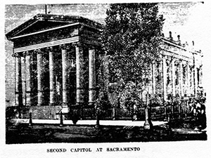 Benicia happily welcomed the legislature when they reconvened on 11 February 1853. Because of the addition of an ordinance depot and a military post, Benicia, named for the second name of the wife of General Vallejo, had grown rapidly before being named the state’s third capital. The Capitol building, itself, was a two story brick building with two large rooms for the legislative chambers and many smaller rooms for the many committees. The entrance to the building was appropriately grand with large columns and pillars. The session was continued with little complaint until it adjourned 19 May 1853. When the Fifth session began on 2 January 1854, it was reported that over 100 men had no place to sleep except in saloons and once again talk began of a change. It was about this time that the city of Sacramento made a generous proposal. They offered the spacious Sacramento County courthouse, many additional rooms, a fireproof vault and free moving for all legislators and belongings as well as the furnishings. They also included a building site for a new capitol building. The offer was accepted and on 25 February 1854, Governor Bigler signed the bill calling for the new state capital to be at Sacramento. The very same day, everything was loaded up, legislators, governor, and all the baggage, onto the steamer, Wilson G. Hunt, for the voyage to Sacramento. 25 February 1854 to present