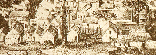 1850 Originally it is 4 or 5 lots and has several small stores on it, including the Boston Bakery.