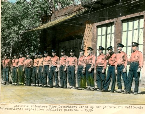 1903 July 4 - Images were struck of Tuolumne No. 1 with 27 men in brass buttoned uniforms in front of their Engine House on State Street. George Napolean was foreman. Columbia No. 2 was before their engine house on Main Street, with their flag and bunting draped jose carriage, 15 men in uniform of black pants, white shirts and fireman's helmets.