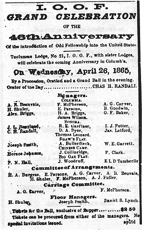 1865 April 22 - Odd Fellows advertize in the Tuolumne Courier.