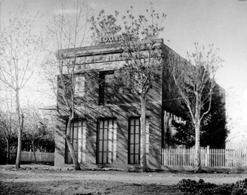 1854 After the building burns in July, the lot is sold to Dr. James McChesney. He starts a two story brick building, and has a store on the lower floor with his office in back and a meeting hall on the second floor. (See image above.)