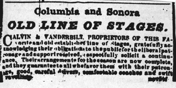 1865 The Old Line of Stages ran an ad in the last Columbia newspaper,called the Tuolumne Courier.